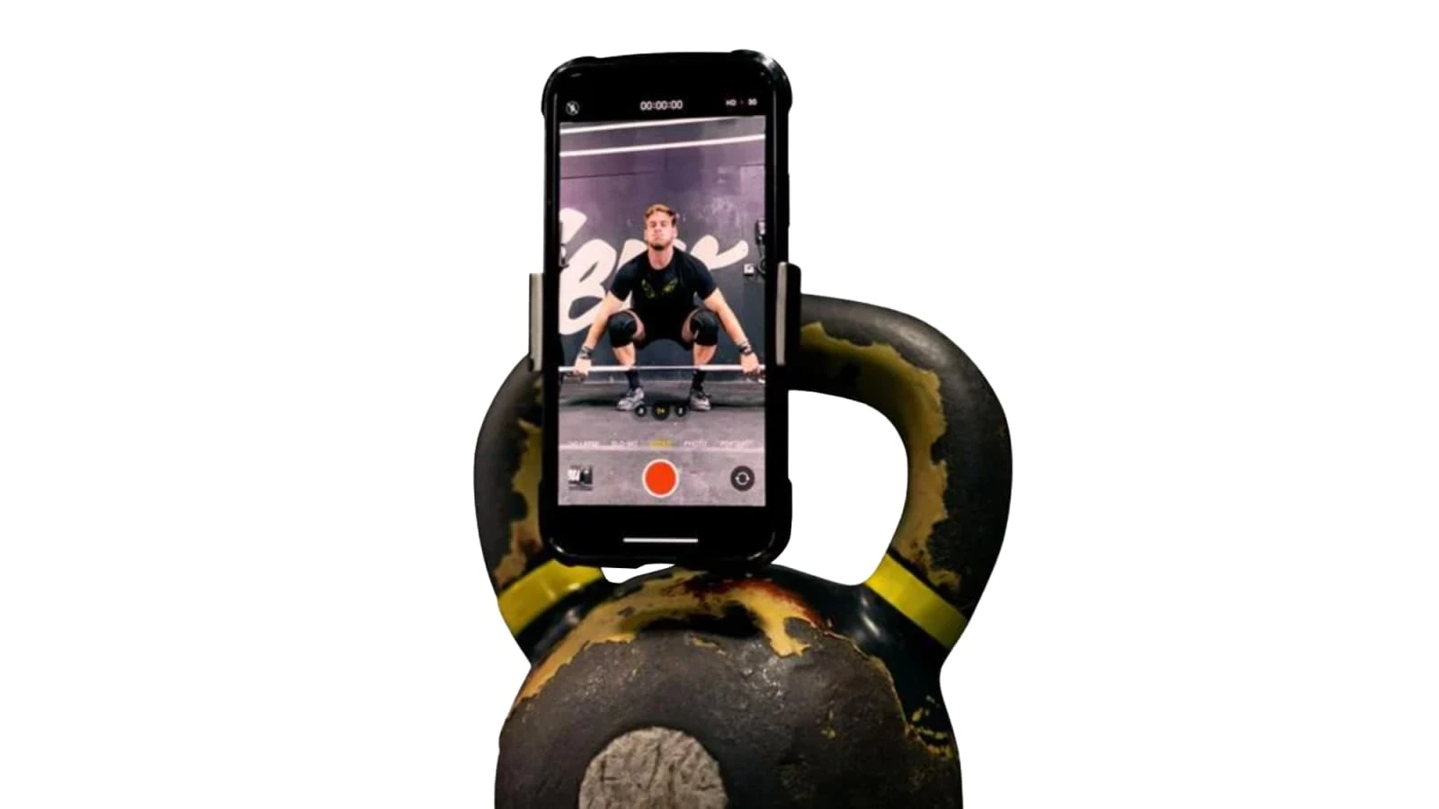 Designed to securely hold most popular smartphones (and their cases), the Perchmount Clip can be attached directly to a barbell, dumbbell, kettlebell, or pull-up bar to help an athlete track their time or take video during a workout. The clip can also function as a convenient smartphone kickstand.