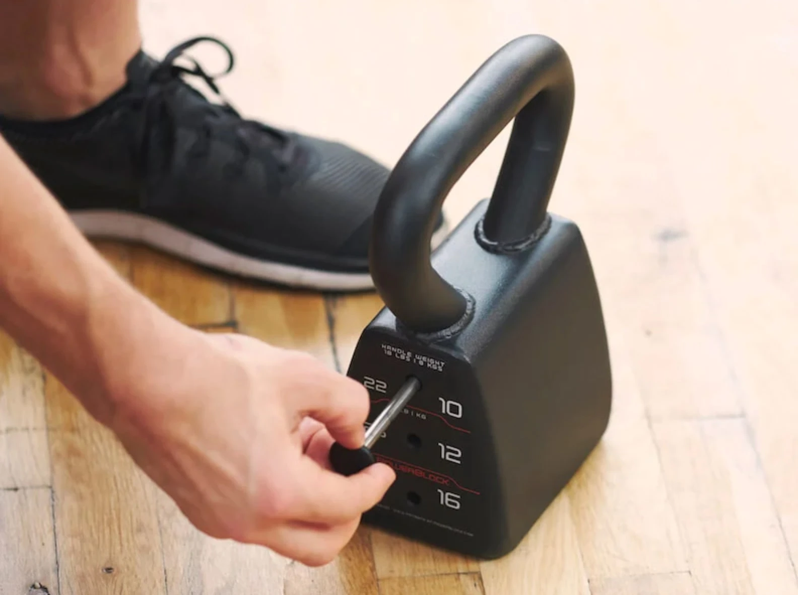 PowerBlock Adjustable Kettlebells not only help athletes and gym owners save on the costs of buying full sets of KBs, they also save loads of storage space, and allow multiple athletes of all sizes and skill levels to train with the same implement, quickly adjusting the weight load to match their goals.