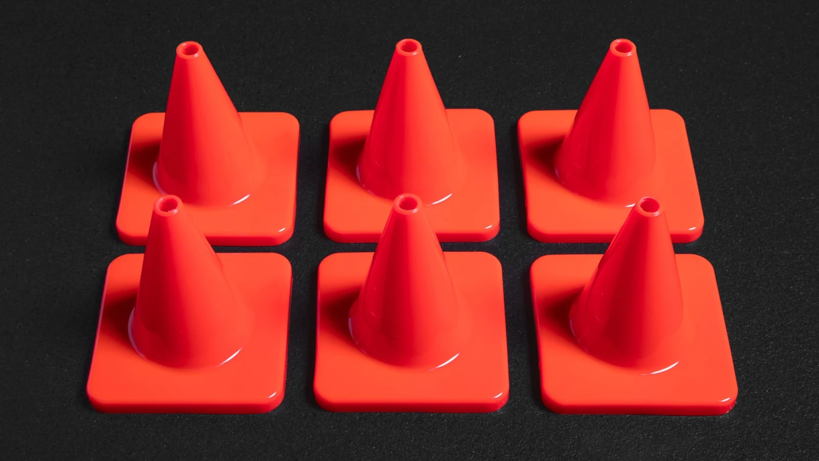 Each orange cone marker is made from a flexible PVC and creates a 3.5” x 3.5” footprint. Stackable, compact, and portable—but still visible from long distances—4” tall cones can be set up for everything from agility drills and training aids to marking the measurements / boundaries of a playing field.
