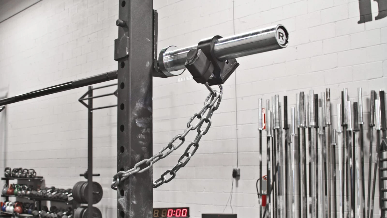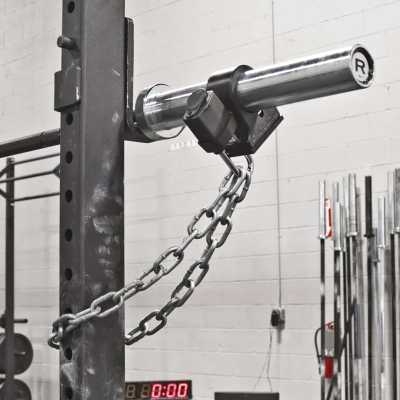 The Proloc™ Blocker is great if you have to store gear in a public gym. The Blocker locks one end of the bar which renders the bar useless. Use a chain to secure your bar to a fixed object. You can also use it on weight trees if you don’t want anyone using your plates. .
