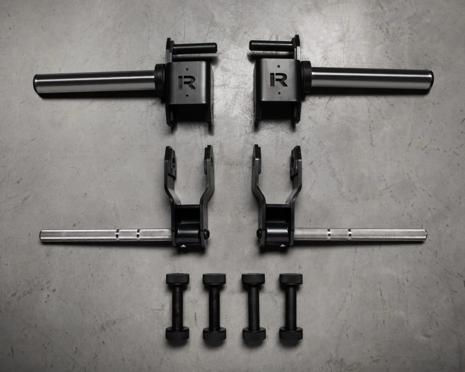 The AH-1 Articulating Handle Kit is available here a la carte, and includes everything needed to replace the standard handles on our LT-1 50 Cal Trolley or FL-2 Fixed Lever Arm systems. Due to their unique hinging / swiveled design, these barbell-style handles enable a more natural travel path for performing deadlifts, bent over rows, overhead press, bench press, and other traditional exercises.