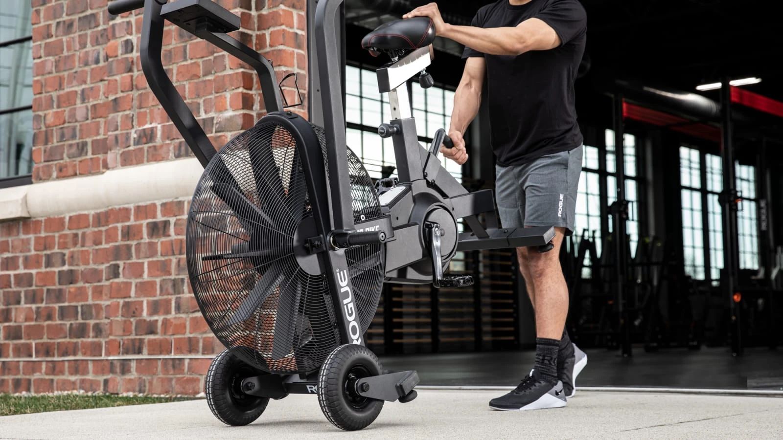 An exclusive attachment for the Rogue Echo Bike, the Turf Tire and Handle Kit is designed to replace the standard front foot of the unit, adding a new level of maneuverability to this overbuilt 127 LB “stationary” bike. The kit’s two large polyurethane tires and knurled, easy-grip handle allow gym owners to easily reposition the Echo Bike and/or quickly roll it across a gym floor. The bulk and strength of the wheels also means you can move the bike outside over grass/dirt/pavement to set up an outdoor training space virtually anywhere.