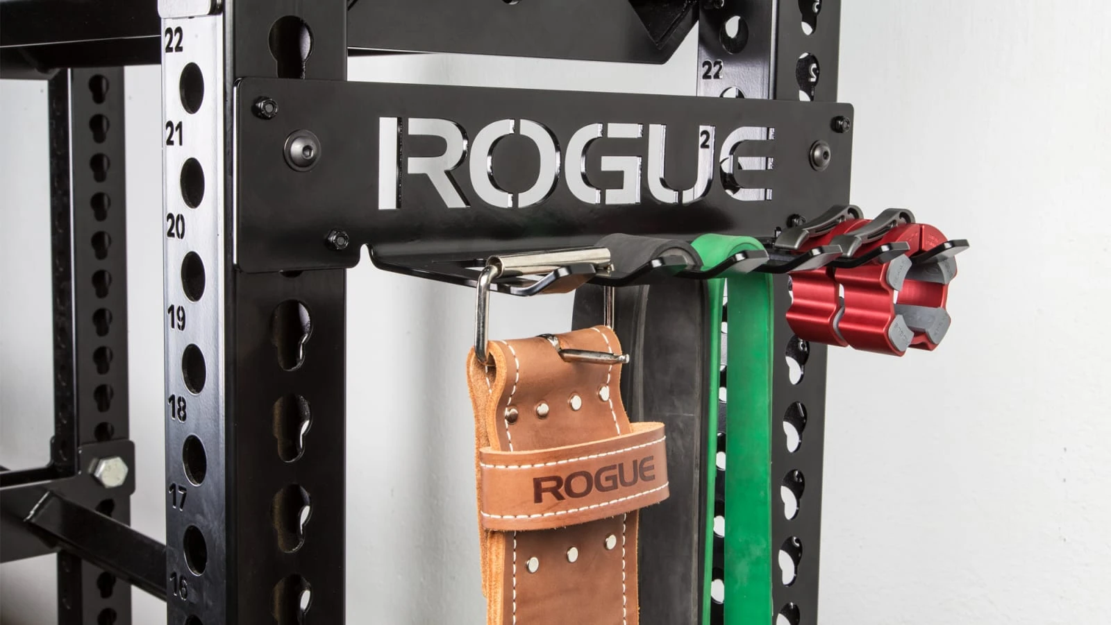 Rogue’s exclusive new line of steel hanger attachments are all designed to mount to an existing Monster Mass Storage unit, with options for efficiently storing everything from jump ropes and collars to weight belts, bands, and chains. There are five variations of hanger to choose from, and each is finished in our medium gloss black powdercoat with laser-cut Rogue branding.