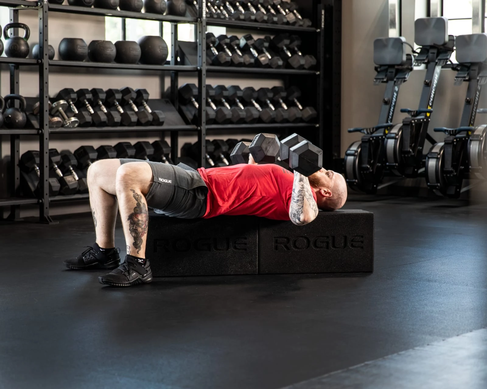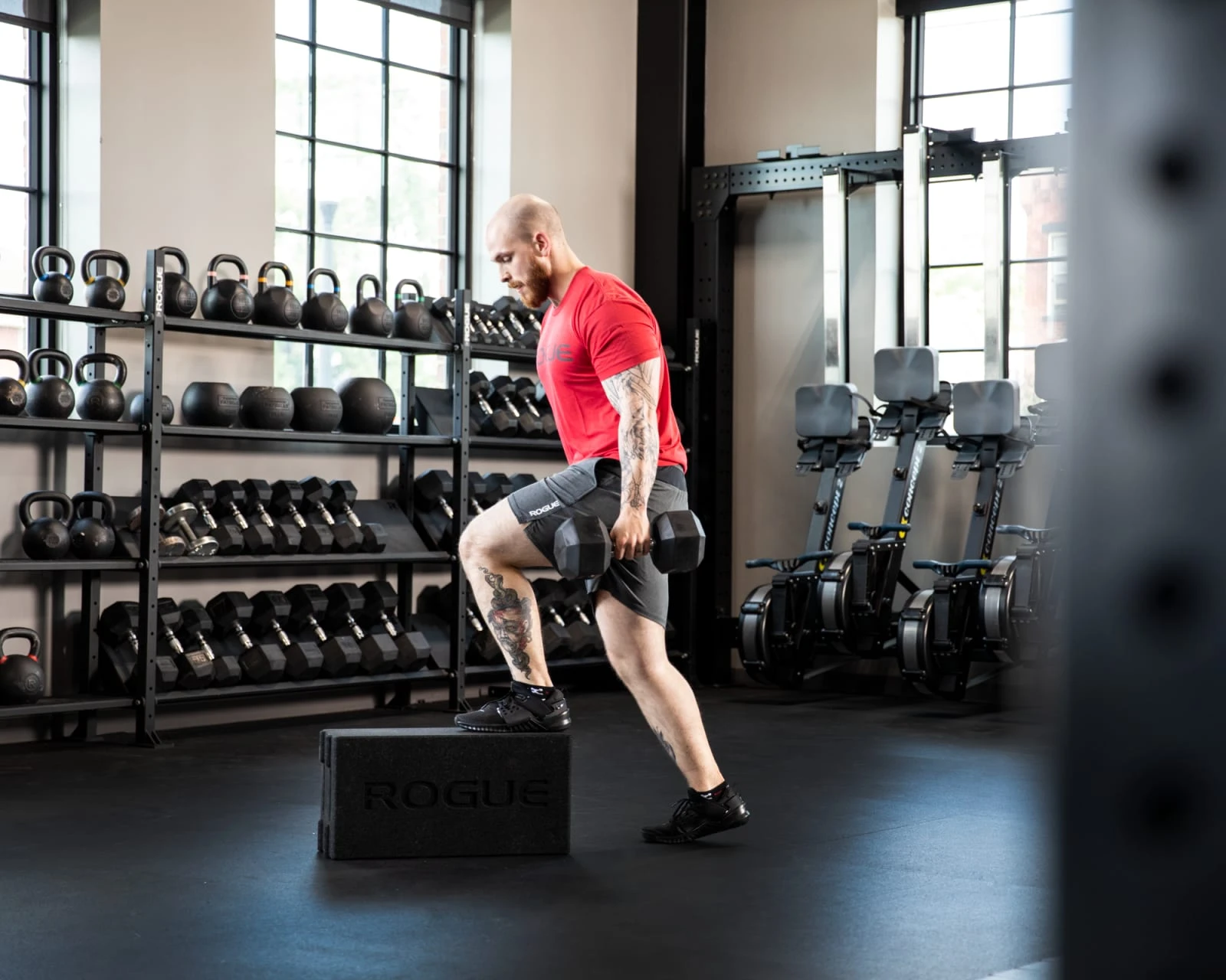 Over the years, gym owners have adapted these rock solid implements for a wide variety of uses, including plyobox / box jumps, agility drills, carries, and throws. Two interlocked Ballistic Blocks can create a simple but sturdy flat bench for dumbbell bench presses, and the block’s one-foot height makes it an effective step-up platform for shorter athletes to reach a pull-up bar. Rogue has even used the Ballistic Blocks as podiums at the Arnold Classic. Feel free to get creative.