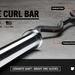 This version of the Rogue Curl Bar includes a Black Cerakote shaft finish and bright zinc sleeves (a slight variation on our original E-Coat Curl Bar) Cerakote is a ceramic-based coating that was first popularized in the firearm industry for its durability in thin applications and excellent corrosion resistance—up to 100x that of traditional Black Zinc.
