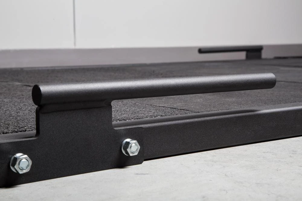 Customers can quickly assemble the Rogue Deadlift Platform thanks to a bolt-together design and laser-cut / precision-bent gussets. The provided band pegs are extra long to work with longer specialty barbells in addition to standard barbells, and a set of floor clips are included to secure each end of the platform to the ground.
