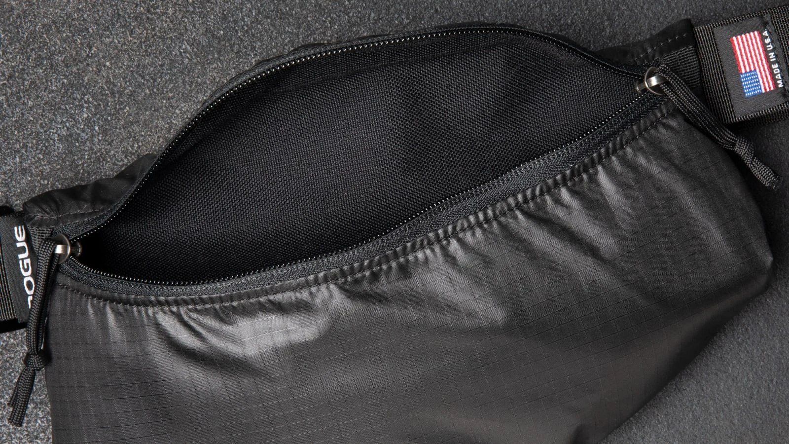 Each fanny pack comes with two tags; one with Rogue branding and the other with a Made in the USA flag logo.