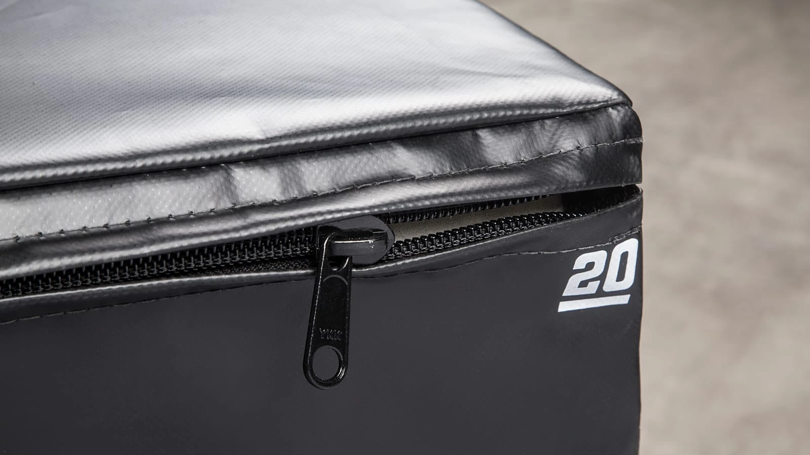 Sold individually, each 58LB jump box features an ultra dense foam core with softer foam on all six sides—making them firm and secure enough to perform plyometric movements, but soft enough that you won’t tear up your shins on the edges if you misstep. The box can be quickly positioned at three different height settings—30″, 24″, and 20″—and an is included with printed indications of which height you’re jumping at.
