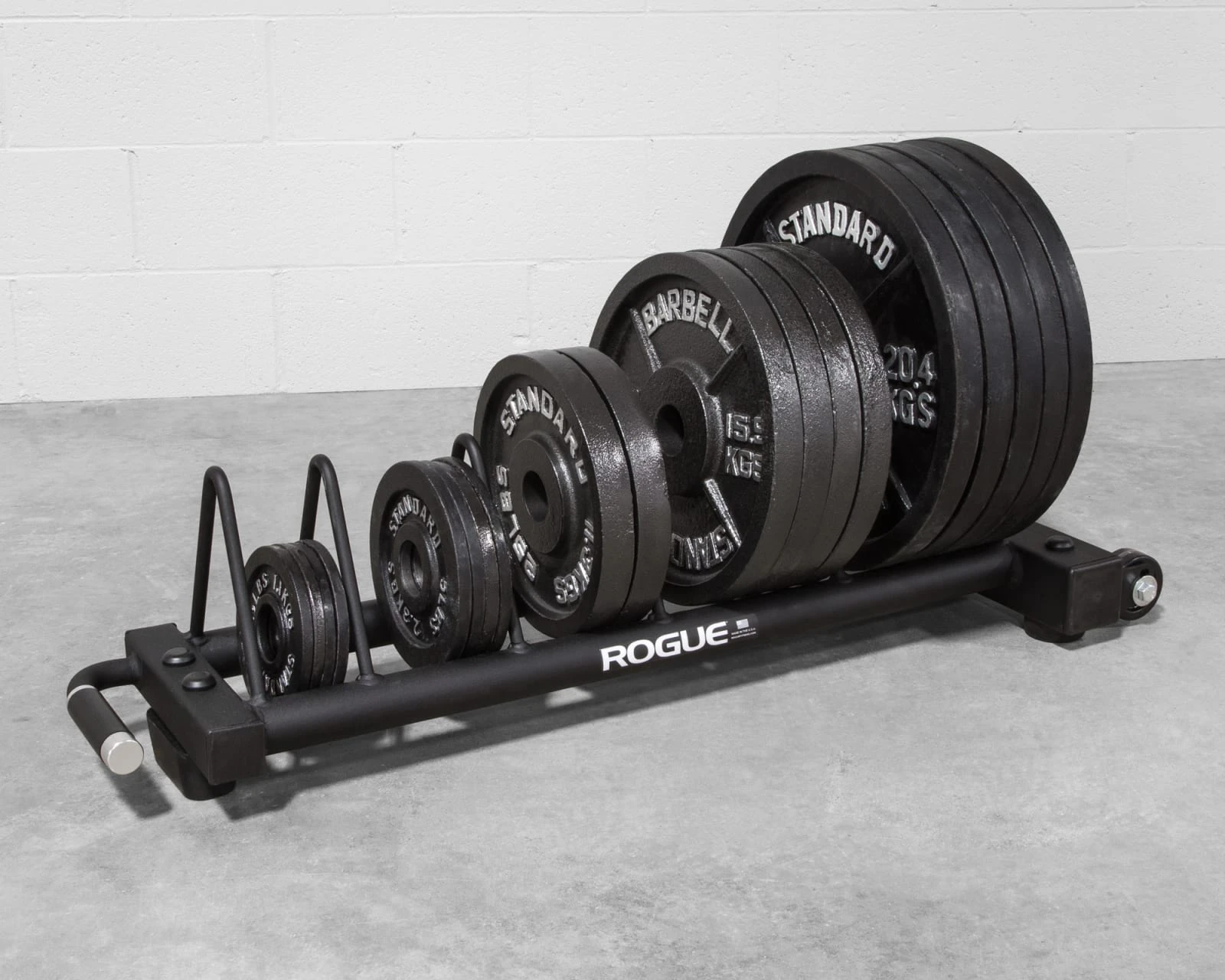 The fully redesigned Rogue Horizontal Plate Rack offers a single, versatile storage solution for any and all types of bumpers—including Hi Temps, HG Bumpers, Competition Plates, and Steel Plates. Utilizing new manufacturing capabilities, Version 2.0 features a sleeker look with a wider back end for greater stability during transport and a set of load-bearing rubber feet to protect your gym’s flooring.