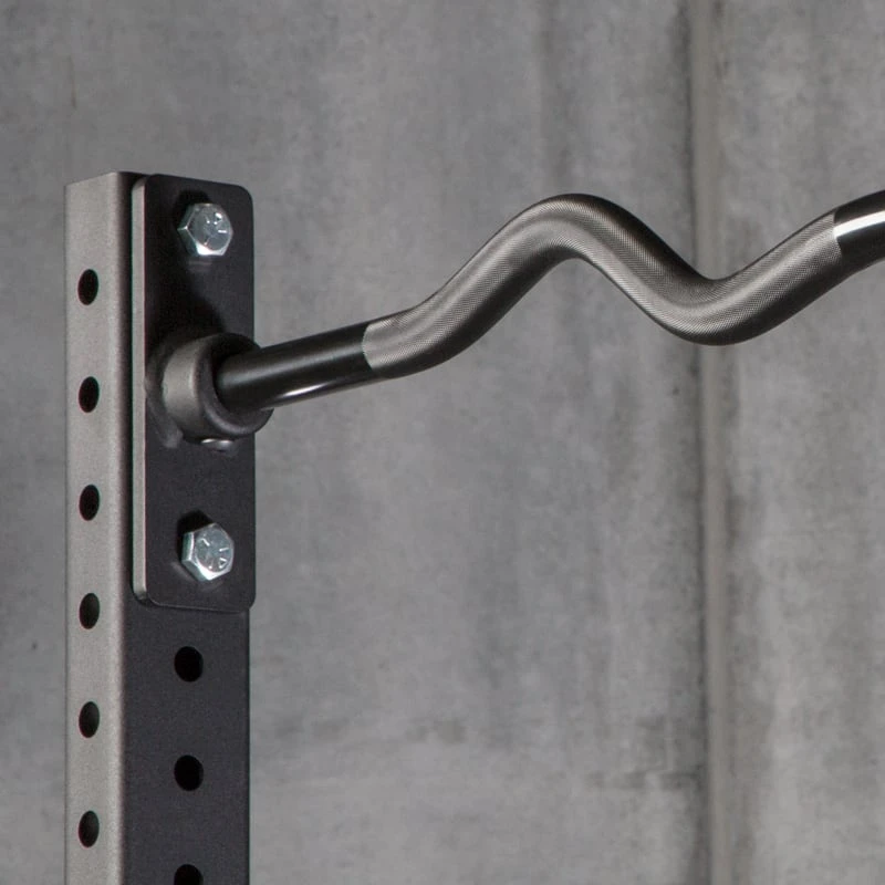 The Socket Pull-Up Curl Bar features the same cambered steel, extended knurling, and Black E-Coat finish as the Rogue Curl Bar. To adapt the design into a pull-up format, we essentially cut off the sleeves and added threaded holes to fix the bar to the provided mounting sockets, enabling easy installation on an existing rig or rack. This particular version is specifically built to fit a 43″ space in an 2×3″ Infinity Series unit.