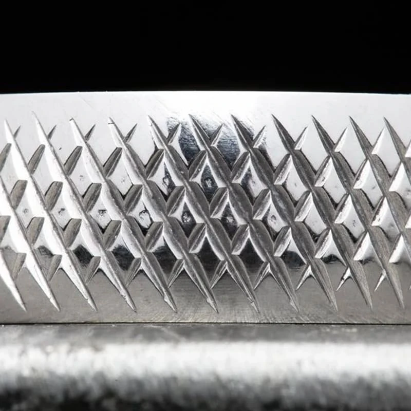 The Rogue Knurled Ring was designed to serve as a one-of-a-kind wedding band, or as commemorative jewelry for any athlete or team with a like-minded passion for fitness and classic American craftsmanship. Each ring is first machined to the desired diameter (standard 4 – 13.5 sizes available), with band width options of 5.46MM and 9.53MM. After the precision knurling is added by the machining department, the ring is then tumbled to remove any sharp points or edges, and finally polished to give it the stainless steel shine.