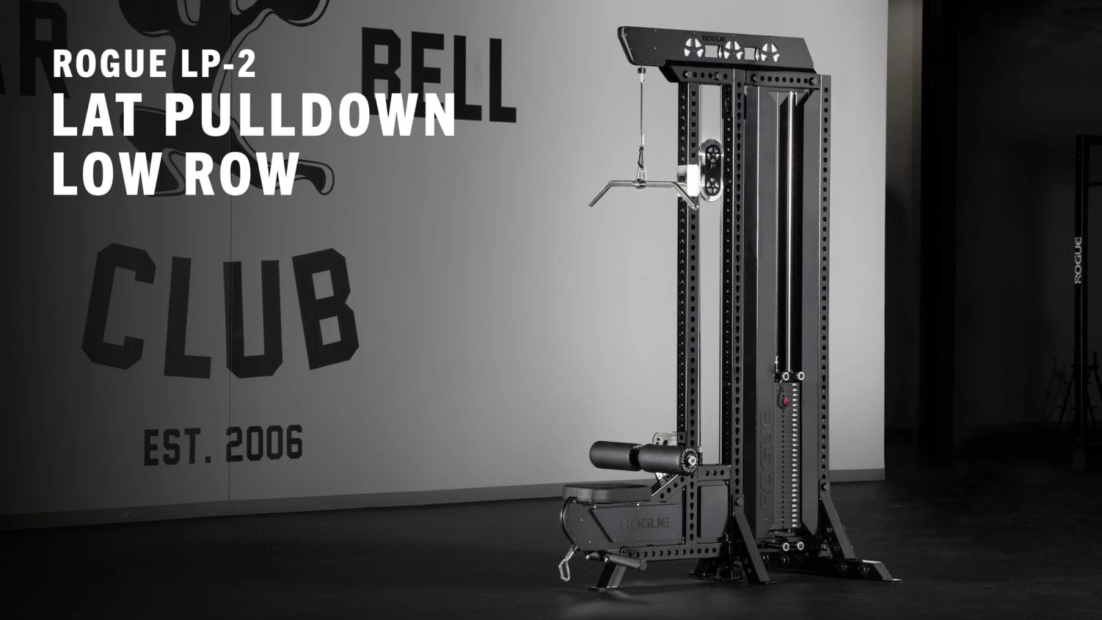 The newly redesigned Rogue LP-2 Lat Pulldown and Low Row machine is manufactured at our Reflex facility in Milan, Illinois, using 3×3” 11-gauge steel; with additional parts laser-cut at the Rogue factory in Columbus. This stand-alone unit ships fully assembled—standing 9 feet tall and occupying a 83” x 42” footprint—and includes a 300 LB weight stack (10 LB increments), stainless steel lat bar, diamond-tread adjustable footplate, 6” machined aluminum pulleys, a USA Mil Spec cable, and a set of custom-built black carabiners—one each for the lat pulldown and the low row.
