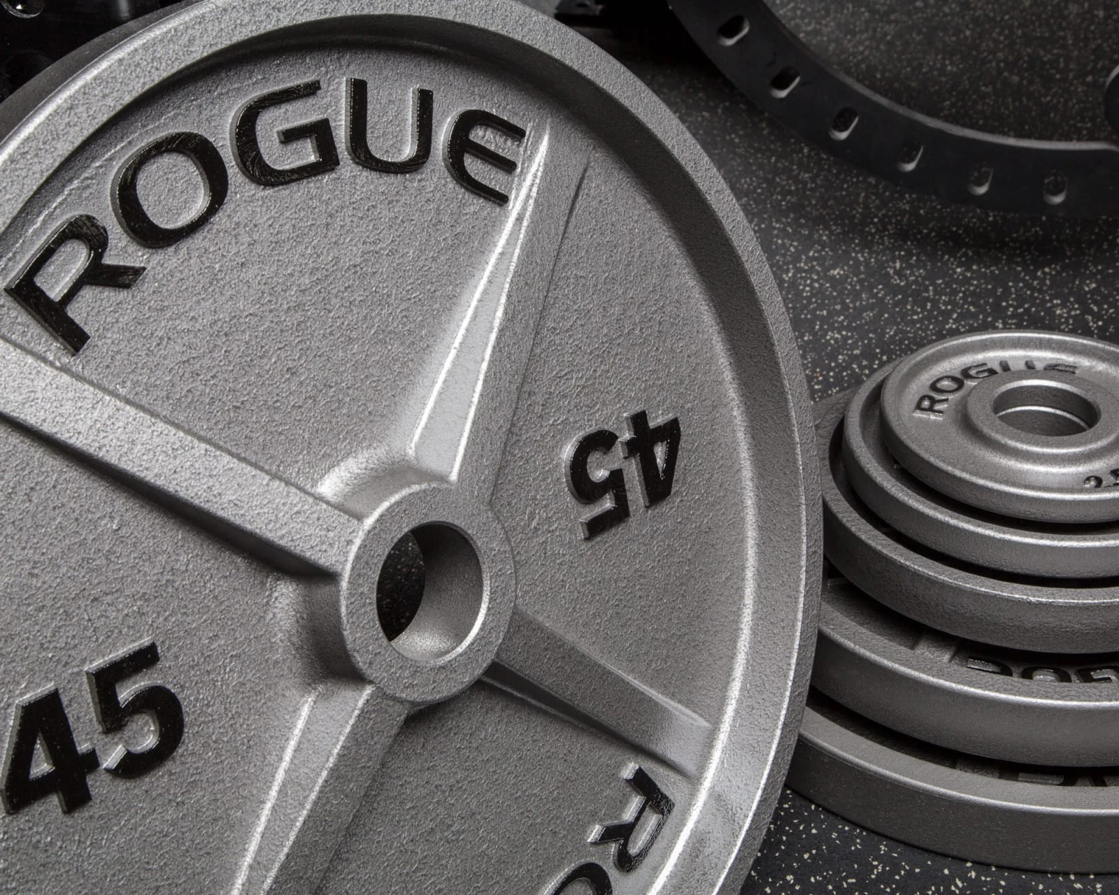 Available here in a unique gray hammertone finish with raised black text, Rogue’s Machined Olympic Plates offer greater precision than many comparable steel plates in the industry.