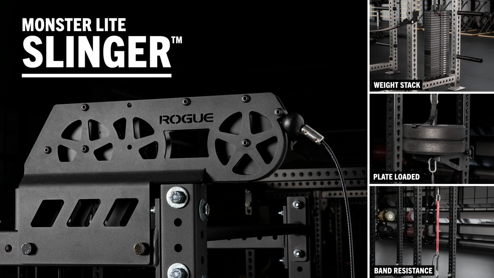 The Rogue Monster Lite Slinger™ is a rack-mounted cable-pulley system designed to deliver the same training benefits of a traditional Lat Pulldown Machine with better space and cost efficiency. This particular model is compatible exclusively with our Monster LITE Power Racks and it’s now available in your choice of three different resistance formats: plate-loaded, band-loaded, or weight stack*. Customers may also choose to purchase Monster Lite 3.0 24” or 43” Crossmembers, which include pre-drilled holes for the cable to pass through. Monster Lite 3.0 crossmembers are required for use with the Weight Stack Slinger and are highly recommended for users who do not want to drill holes in their existing Monster Lite 1.0 or 2.0 crossmembers.*
