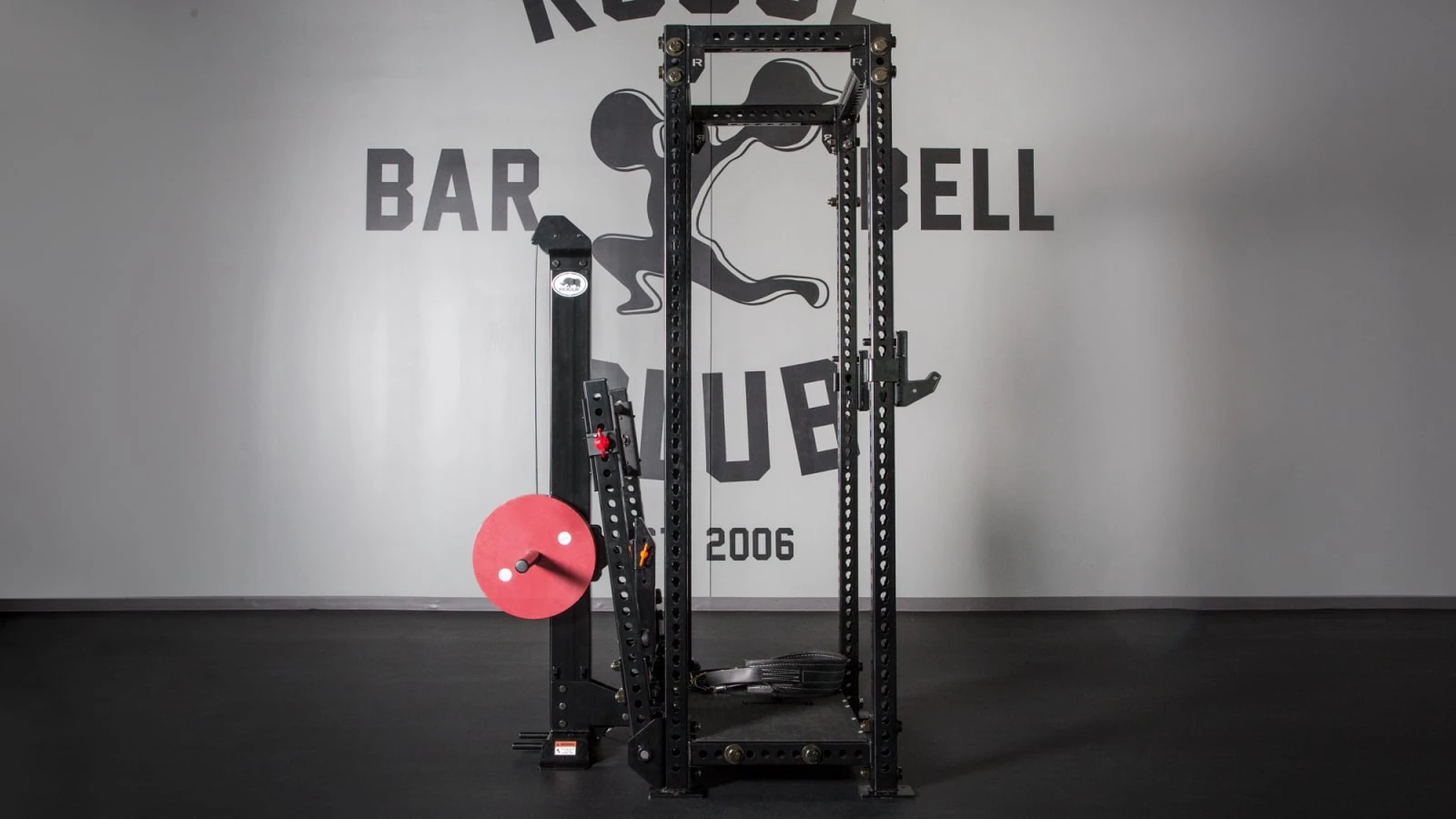 Using the Rhino Belt Squat + RM-3: Step onto the platform and strap on the Rogue Multi Belt around your hips. Upon standing up, the trolley will rise and disengage from the Rhino Horn. This allows users to then pull back on the handles and start squatting. Once the handles are pulled back, they will stay back until the user pushes the handles back towards the tower, allowing the horn to safely re-engage the trolley. With this special configuration with the RM-3, athletes can also incorporate barbell movements into their workout while using the Belt Squat at the same time.