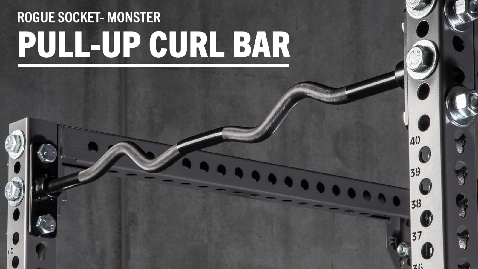 The Socket Pull-Up Curl Bar features the same 28.5MM cambered steel, extended knurling, and Black E-Coat finish as the Rogue Curl Bar. To adapt the design into a pull-up format, we essentially cut off the sleeves and added threaded holes to fix the bar to the provided mounting sockets, enabling easy installation on an existing rig or rack. This particular version is specifically built to fit a 43″ space in a 3×3″ Monster Series unit.