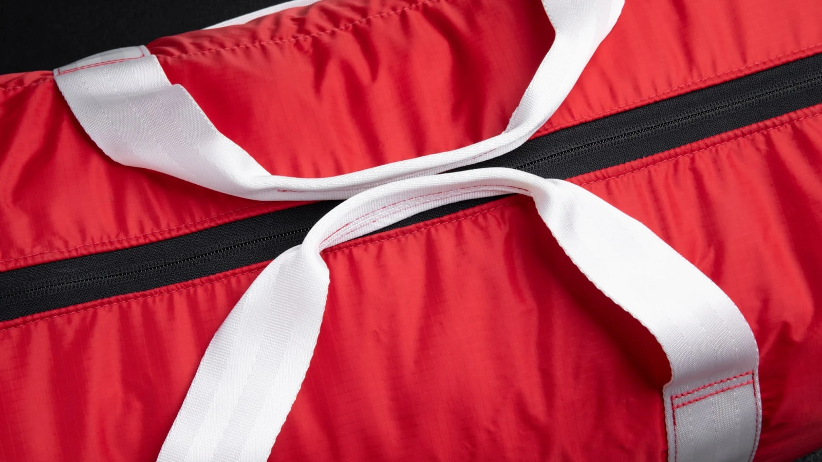 Each rectangular gym bag measures 24”L x 9”W x 10”H, offering versatility outside the gym as a travel / weekend / carry-on bag, with a simple but convenient design for organizing items. The interior includes a large mesh zipper pocket along the entire length of one interior panel, as well as a built-in zippered shoe/accessory pocket (made from thin 70D ripstop) that measures 15.5” x 7.5” x 6.5” when fully protracted. When not in use, this shoe compartment easily tucks into the bottom corner of the bag to open up more space.
