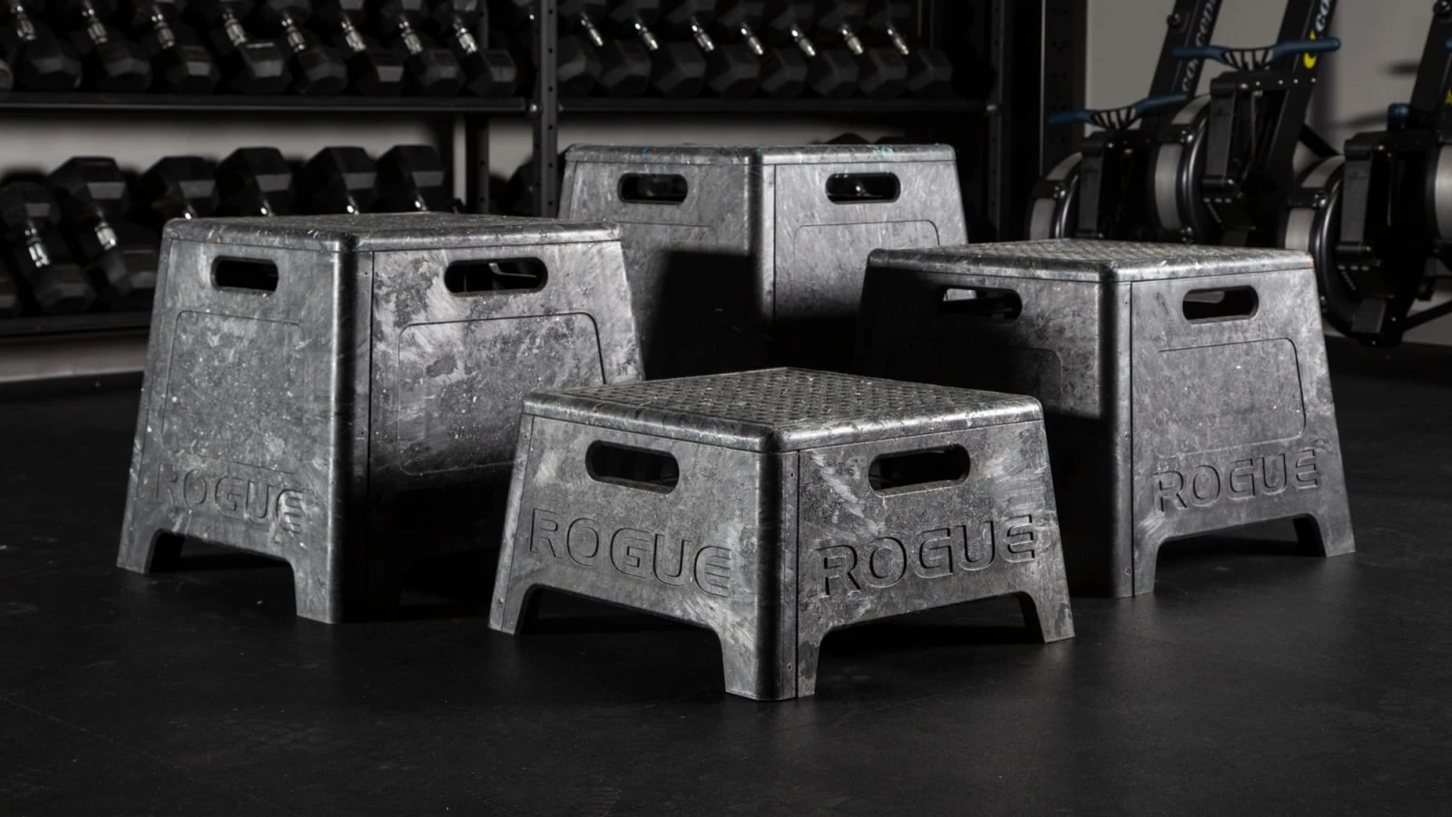 Rogue Resin Plyo Boxes can be ordered individually or as a full set featuring (1) each of all 4 sizes. They are packed flat, saving the customer on shipping costs, and require only minimal assembly (holes are pre-drilled). Once built, multiple boxes of any size can be stored conveniently in overlapping stacks–a space-saver for small home gyms and larger facilities, alike. Hand-hold slots are also included on all four sides of the box for easy transport, placement, and removal.