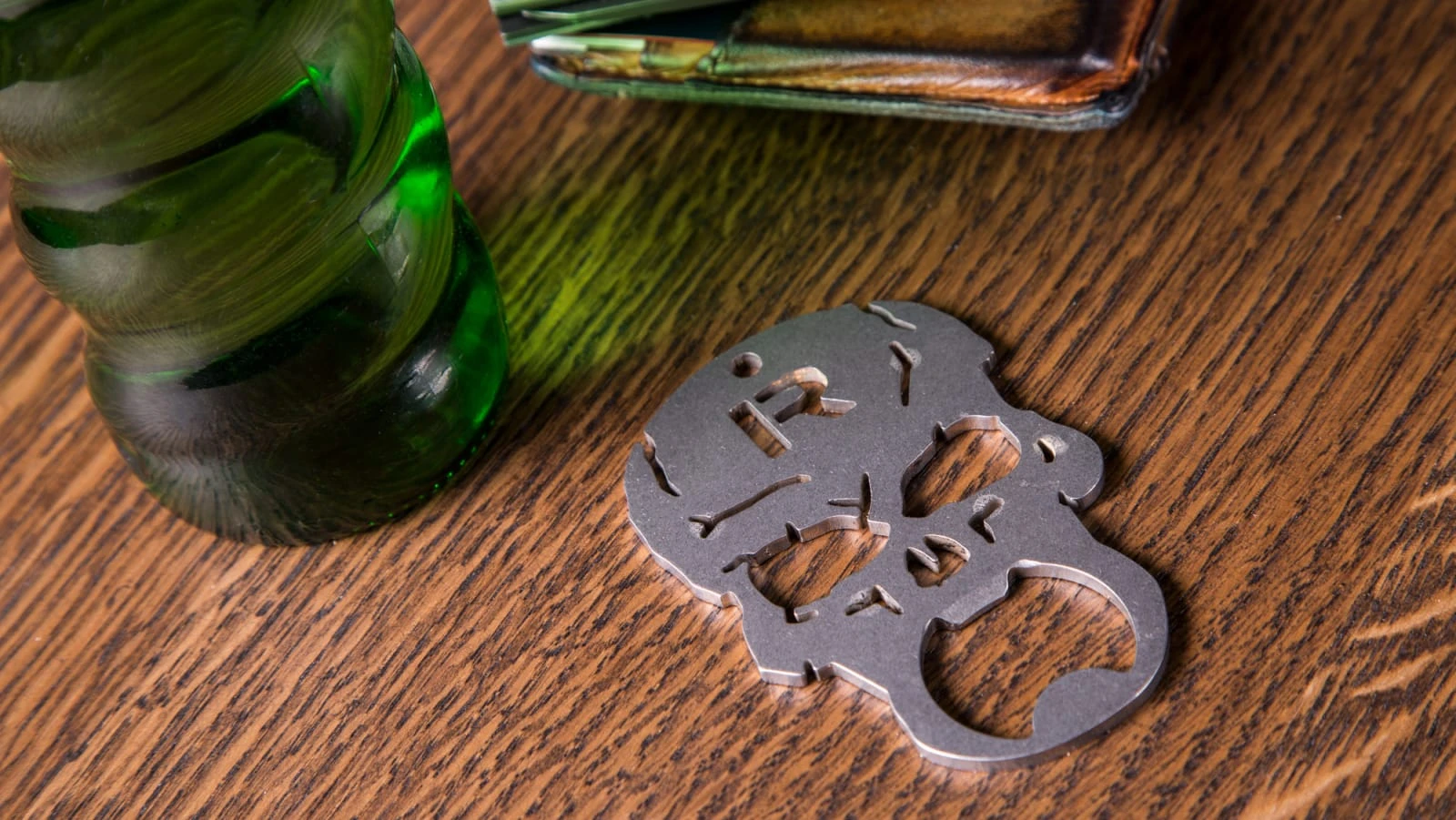 The Rogue Skull Bottle Opener is made from 11-gauge stainless steel, with precision, laser-cut features and Rogue “R” branding. Each opener is manufactured in the USA and tumbled to remove any harsh edges. Fits in your pocket, takes no prisoners, leaves no bottles behind.