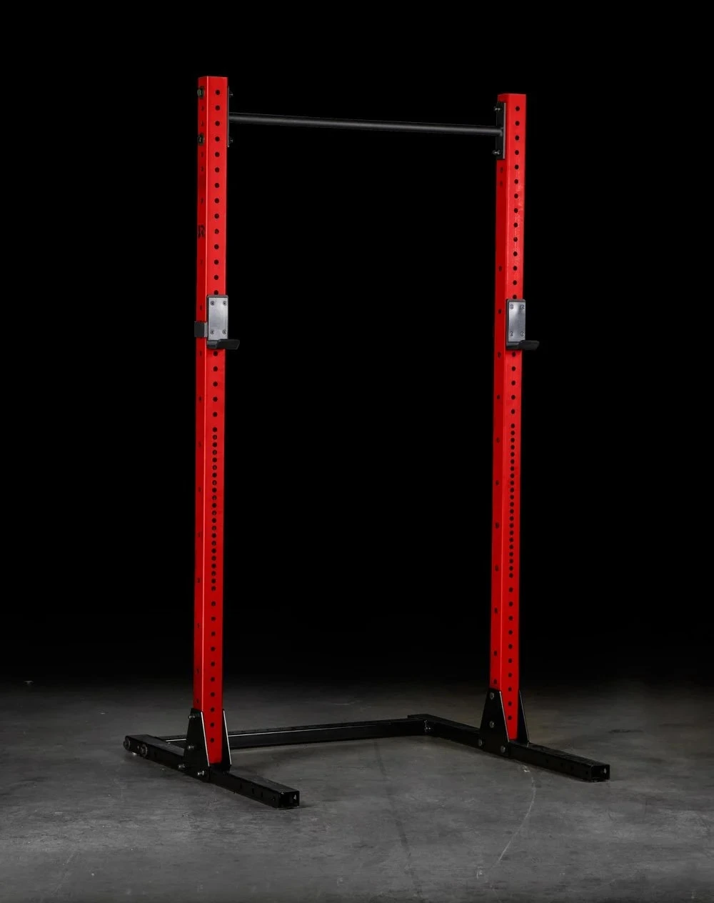 Now available in a wide spectrum of custom colors, the SML-2C Monster Lite Squat Stand delivers much of the strength and versatility of a power rack in an efficient, compact frame. Featuring 3×3″ 11-gauge steel uprights, an adjustable fat/skinny pull-up bar, and 5/8″ holes in the Westside spacing pattern, it’s an affordable hybrid of Rogue’s S-2 and Monster SM-2 squat stands.
