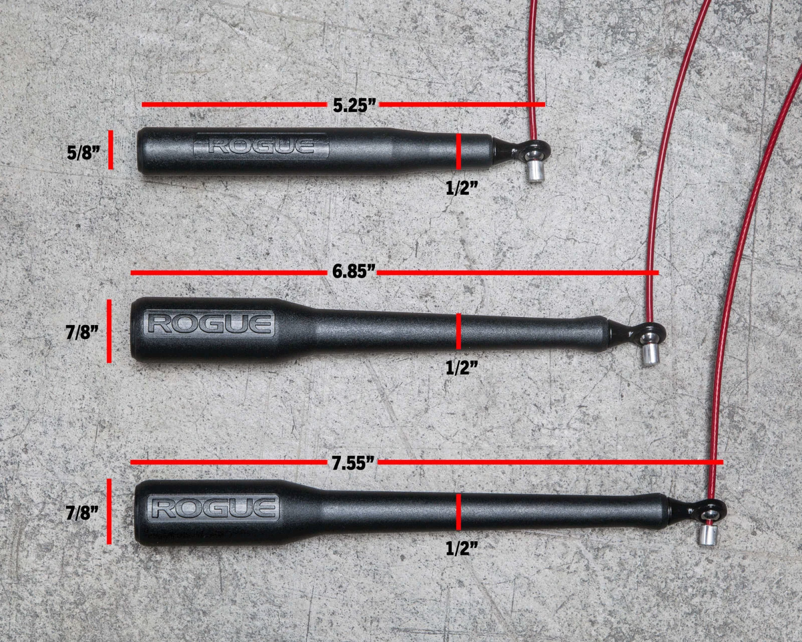 The tapered, Long Handle version of our SR-1 Bearing Speed Rope increases the user’s wingspan with nearly an inch of additional length from the base to the eyelet. The rotating handgrips are made from an indestructible nylon resin and have the same 0.875″ diameter (Handgrip) (22MM) diameter as the standard SR-1 rope.