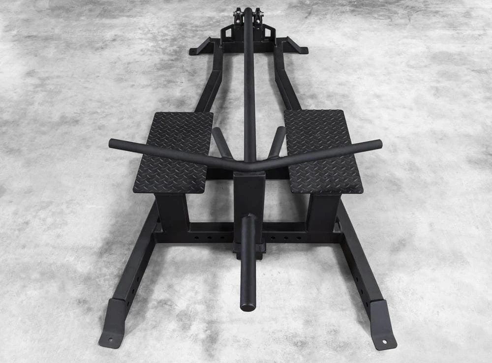 This fully assembled, no-nonsense machine gives you all the benefits of a neutral-grip T-bar row without the need of a barbell, landmine unit, or other accessories. Compatible with most styles of steel and rubber plates, the Rogue T-Bar Row features a 1.88” diameter post with more than a foot of useable length. After loading a desired weight, athletes can establish their proper foot placement on the machine’s 10×20” diamond tread footplates and choose from either the wide or narrow set of easy-grip, knurled handles.