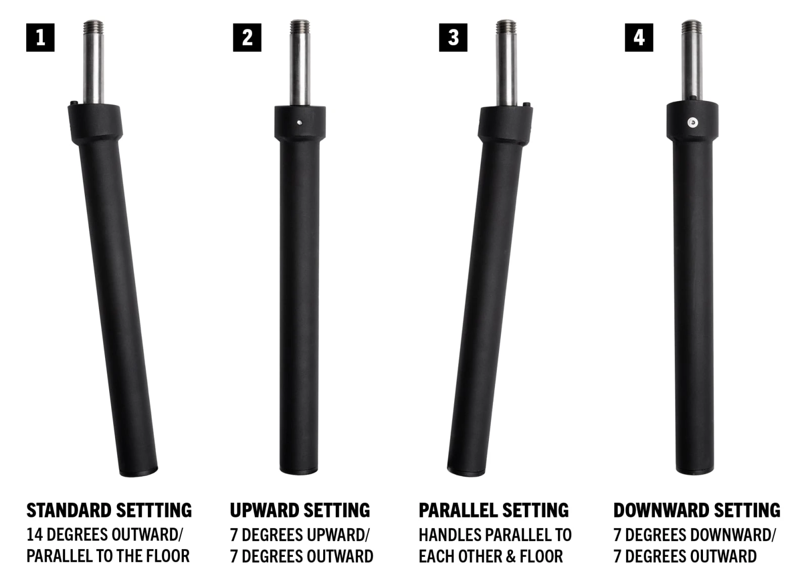 Using the included Monster Knurled Knob, handle adjustments can be made quickly and easily from one athlete to the next. The 1.9” diameter handles offer 16” of usable length, and are available in two finish options: Textured Black Smooth (same as the Matador) or Texture Black Knurled. The upgraded Knurled option includes convenient knurl marks approximately every 4” along each handle to help the user find and repeat a comfortable starting position from workout to workout.