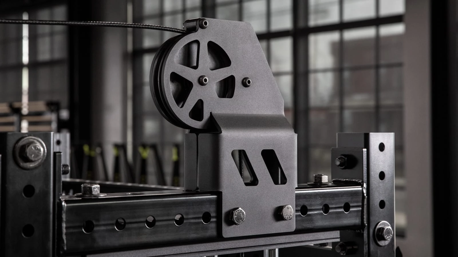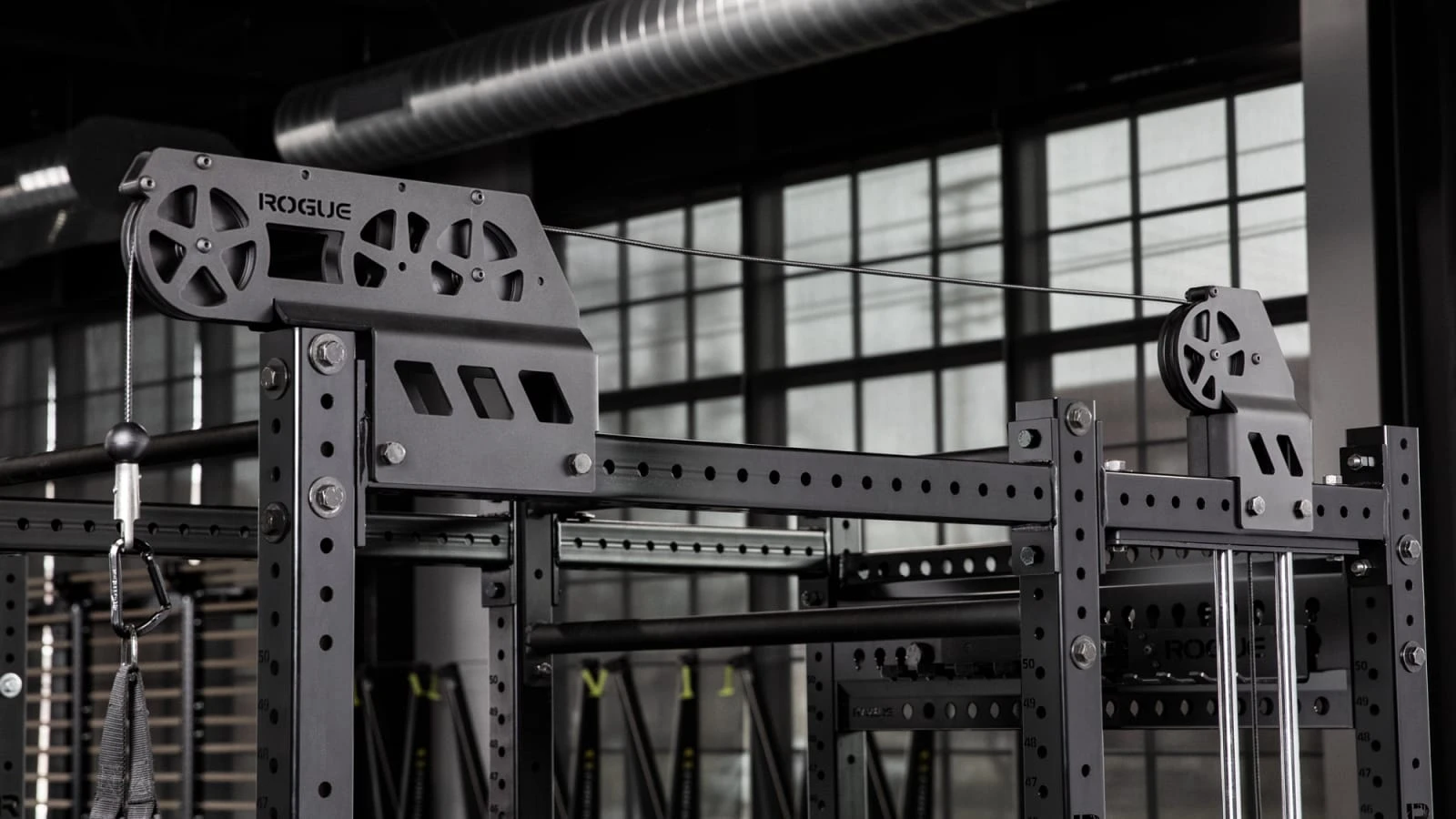 The SLML-6 is a unique variation of our standard Monster Lite Weight Stack Slinger™, designed specifically for use with RML-6 sized power racks (90” height only). Ideal for users who have their rack positioned near a wall, this new set-up enables (a) the weight stack to sit conveniently in the smaller 24” back section of an RML-6 unit, and (b) the user to still work freely off the front of the rack, utilizing the kit’s longer cable and additional pulley.