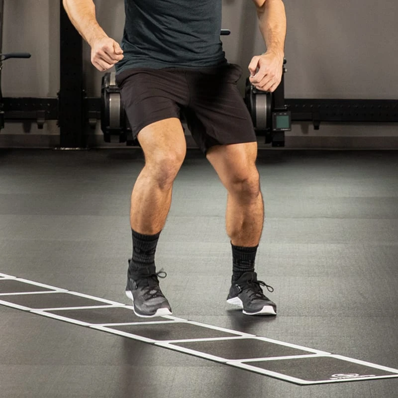 The Roll-Out Ladder by Stroops measures 15 ft. long x 12” wide, and features a durable rubberized construction (weighing 12 LBS in total) that ensures absolute stability during agility drills.